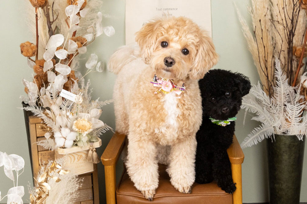 愛犬は2頭、マルプー(7kg)とブラックのタイニープードル(2.8kg)です。
